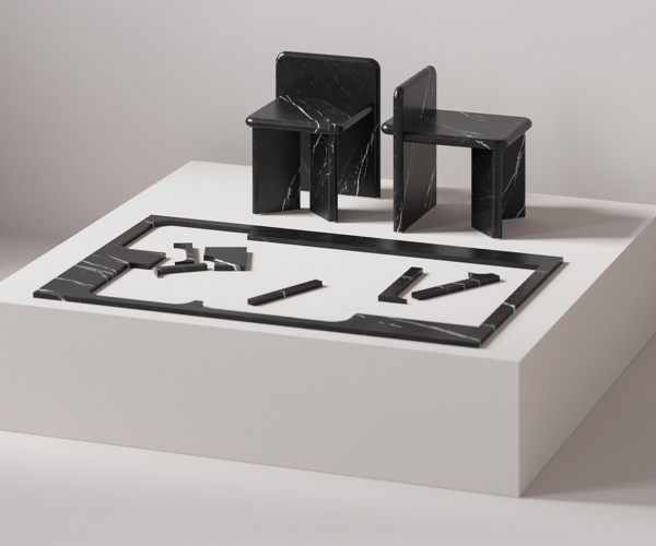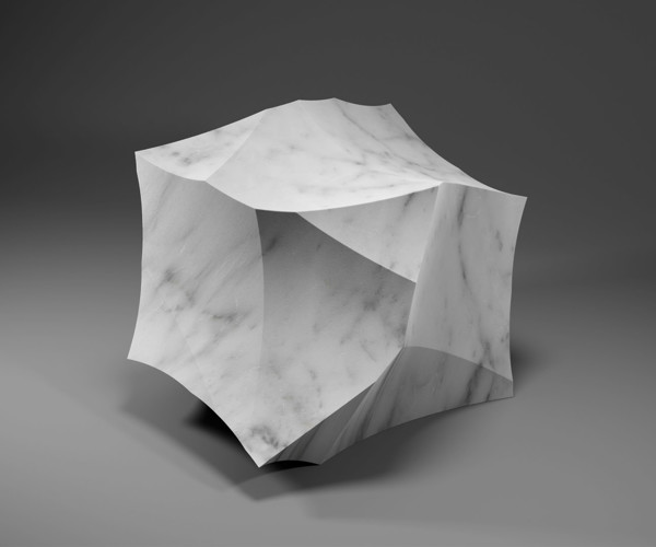 Il progetto si basa sulla superficie di Bolza, un oggetto matematico che mostra la massima simmetria possibile per un doppio toro. Rappresentare la sua struttura e la curvatura iperbolica come un oggetto fisico è fondamentalmente impossibile. Questa impossibilità è ulteriormente accentuata dalla scelta del marmo come ultima “pièce de résistance”. Il marmo viene tagliato lungo dodici coppie parallele di curve da sei direzioni, sfruttando le simmetrie interne della superficie di Bolza per avvicinarsi alla sua essenza e conferire all’oggetto la sua forma unica e caratteristica. La leggera curvatura dei tagli interni compete con un’ipotetica tassellatura ideale del blocco, generando spostamenti complessi e inaspettati negli spigoli e negli angoli, rivelando l’interno del blocco di marmo, la sua storia materica intrinseca, le sue inclusioni, imperfezioni e difetti. L’oggetto risultante oscilla tra l’espressione di una scelta progettuale, i limiti delle regole, dei materiali e dei sistemi produttivi